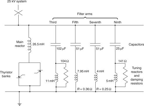 HVDC current source LCCs generate voltage and current harmonics on both AC and DC sides of the link. Harmonic filters are therefore required to mitigate these effects to levels that meet network requirements. The filters are made up of capacitors and reactors with parallel resistances to provide relatively low Q tuned circuits. As previously stated they may also therefore provide a contribution to the reactive power requirements of current source HVDC schemes.