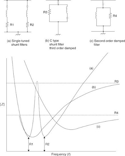 Commonly, shunt-type harmonic filters are used in PSs because they provide low impedance paths for currents to ground on one or more harmonic frequencies. Compared to series filters, shunt filters are preferable based on the economic aspects of PS applications.